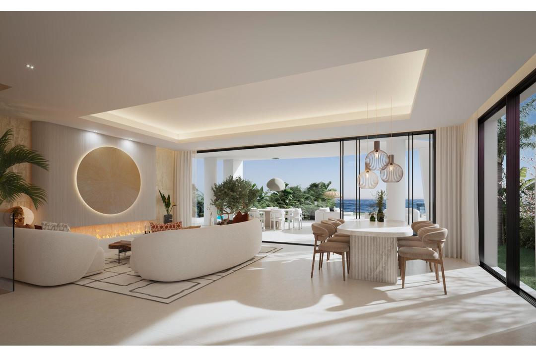 LUXURY FRONT LINE BEACH VILLAS Exclusive project of 4 spectacular homes with a unique design. The villas are located in a gated complex on the beachfront of Marbella East. All villas have been carefully distributed over 4 levels to offer comfort and luxury in each of its spaces. Each property has a private plot of 500 m2 and 4 bedrooms, 4 bathrooms and 1 guest toilet. The outdoor area extends from the covered porch to the swimming pool, and ends in a sandy area on a beach with calm waters. The solarium is equipped with a private swimming pool, giving you the opportunity to cool off and enjoy the sunny weather while admiring the breathtaking views. Marbella is considered the capital of the western Costa del Sol. Bathed by the sea and sheltered from the mountains, with splendid and extensive beaches with calm waters along 27 km of coastline, natural attractions, marinas, its 21 golf courses, and a wide gastronomic offer, from the typical beach "chiringuitos" and tapas bars, to the most luxurious Michelin-starred restaurants. All this, together with its microclimate with 320 days of sunshine a year, make Marbella one of the most sought-after destinations in Spain.