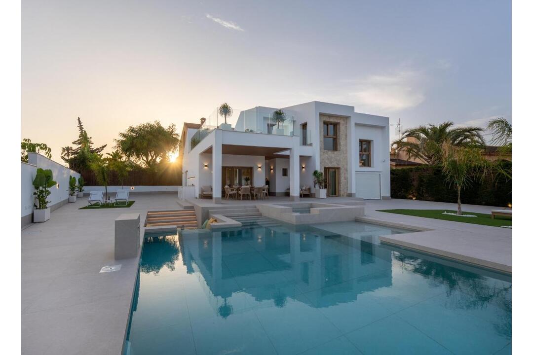 Luxury villa 800 metres from the sea in Campoamor, Costa Blanca South Privileged location in an exclusive natural setting Located in one of the quietest and most private areas of Campoamor, this spectacular villa combines luxury, comfort and an exceptional location just 800 metres from the beaches of Cala de Campoamor and Playa de los Diez Picos. This villa offers exclusive access to a sports area for owners, which includes paddle tennis courts, tennis courts, football pitches, basketball courts and several swimming pools. The natural environment surrounding the property includes protected areas such as the Sierra Escalona and the salt flats of San Pedro del Pinatar and Torrevieja, ideal for lovers of nature and biodiversity. Modern villa with contemporary design and energy efficiency With a plot of 676 m and a built area of 227 m distributed over two floors, this villa is designed to offer maximum comfort. It has 4 double bedrooms, 5 full bathrooms and a spacious living-dining room with an integrated kitchen of over 50 m. The aerothermal system guarantees energy efficiency and sustainability. Elegant and functional interiors The kitchen, fully equipped with Bosch appliances, stands out for its central island decorated with wooden slats, LED lighting and a practical hidden door that gives access to the laundry room, garage and outdoor bathroom. The living room has large windows that visually connect with the outside, reinforcing the spaciousness of the space and creating a bright and welcoming atmosphere. Bedrooms and bathrooms designed for comfort The master bedroom has a dressing room and en-suite bathroom. All bathrooms feature an exclusive design with modern finishes and electric towel rails (except the outdoor bathroom). LED lighting is carefully distributed throughout the property to provide warmth and style. Spectacular outdoor area with swimming pool and outdoor kitchen The villa includes two porches, a 47 m private pool with jacuzzi and beach area, as well as a solarium on the upper floor. The chill-out area, set with LED lighting, creates the perfect environment for relaxation. The outdoor kitchen makes this villa the ideal place to enjoy the Mediterranean climate with family and friends. Nearby points of interest Campoamor beach: 0.8 km Las Ramblas golf course: 3 km Zenia Boulevard shopping centre: 6 km Murcia Airport: 45 km Alicante Airport: 70 km Torrevieja town centre: 13 km Experience the Costa Blanca at its best Enjoy over 300 days of sunshine a year, with an average temperature of 20C, in a fully equipped villa, ready to move into. Perfect as a permanent residence or holiday home. Contact us today for more information or to arrange a viewing of this exclusive property in Campoamor.