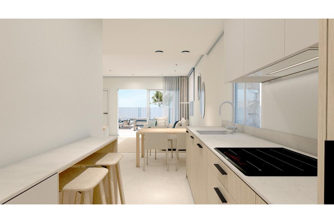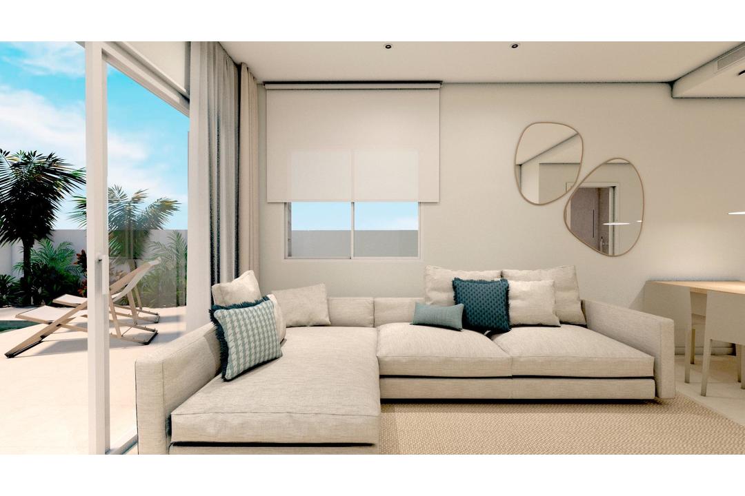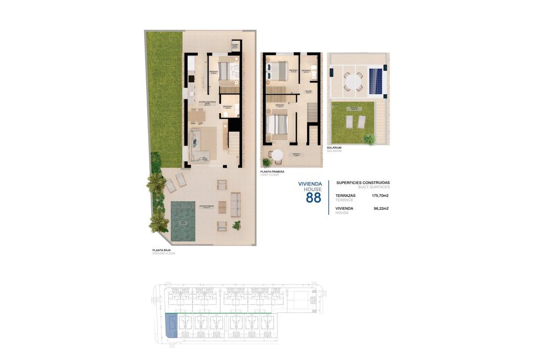 NEW BUILD VILLA IN TORRE DE LA HORADADA New Build residential complex of bungalows and villas in Torre de la Horadada only 450m from the beach. Beautiful villa has 3 bedrooms, 2 bathrooms, open plan kitchen with the lounge area, fitted wardrobes, terrace and solarium, private garden with the pool. All properties has private parking. Torre de la Horadada is located south of Alicante in a beautiful location on the coast. The beautiful beaches of Torre de la Horadada and Mil Palmeras have fine sand beautiful promenade. There are lots of restaurants, bars and shops, also water sports, diving and snorkelling. It is well connected just 40 minutes from Alicante and Murcias Corvera airports, with large commercial shopping centres and multiple golf courses all within easy reach.