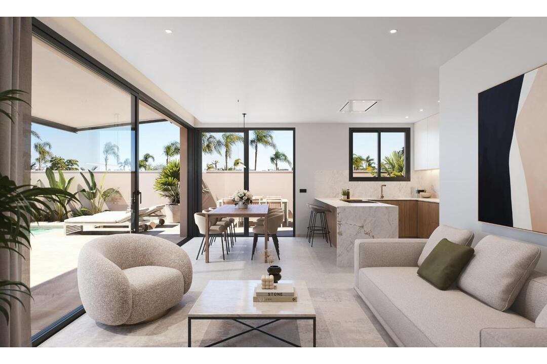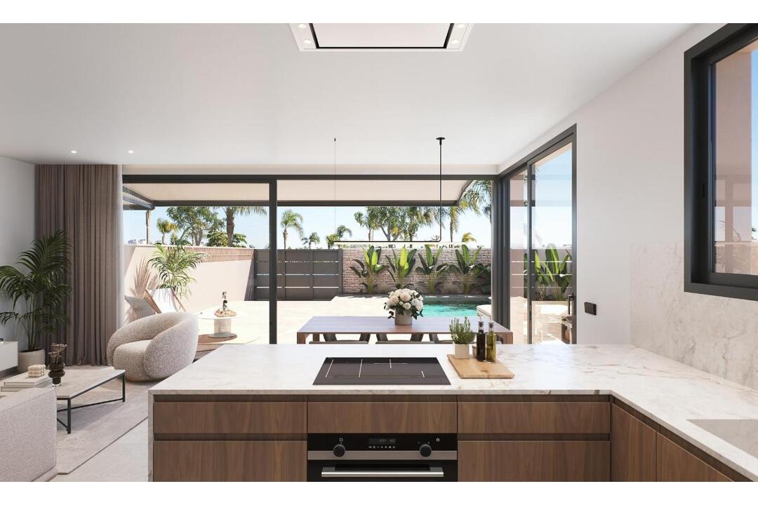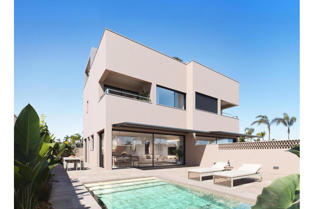Exclusive residential development of 2 luxury semi-detached villas with sea views on Las Higuericas beach, Torre de la Horadada. Discover these impressive semi-detached homes located in Torre de la Horadada, on the second line of Las Higuericas beach. With a modern and elegant design, spacious rooms and top quality materials, these properties have been designed to offer maximum comfort and exclusivity. With a 53m private pool, parking on the plot and a 40 m2 solarium: a spectacular open space ideal for a chill-out area, barbecue or enjoying the sun and unobstructed views. Each villa has independent access from the surrounding streets, as there are no adjacent buildings. With quiet streets and large green areas around the residential complex, these properties are ideal for young families. The villas have a plot of 170 m2 and a built area of 135 m2. The villas are built with three bedrooms and three bathrooms (two of them en-suite) on two floors. The kitchen is fully fitted with the possibility of customisation and includes appliances. Following an open-plan concept, the dining room is surrounded by large windows, providing a pleasant source of natural light, with direct access to the pool and gardens finished with lighting, irrigation and local vegetation. The selected finishes, with top quality materials, the customised luxury design and maximum comfort, together with ducted air conditioning and heating included in all areas, make the villa enjoyable in the hot summers and also in the mild winters, making it possible to live here all year round. Located in one of the best areas of the Costa Blanca, these properties offer a peaceful environment, yet with all amenities nearby: restaurants, supermarkets, golf and shopping centres. The two semi-detached villas are located on the second line of the beach in Las Higuericas, in Torre de la Horadada, a paradise in every way, where you can enjoy the seafront, the immensity of the Mediterranean Sea, the promenade, refreshing swims in the sea, water sports, sailing, surfing, snorkelling and only 8 km from Lo Romero Golf, one of the 21 golf courses on the Costa Blanca. It is 5 minutes from the marina of La Torre de la Horadada and 10 minutes from the marinas of San Pedro del Pinatar, and the best restaurants where you can sample the finest Mediterranean cuisine. Not to mention the proximity of the AP7 motorway, which connects our residential area with two airports with international destinations, Corvera, 44 km away, and Altet, Alicante, 75 km away. The nearest town to the development is Pilar de la Horadada, 1 km away, a quiet village with all kinds of services, schools, health centres, police, pharmacies, etc. There are also two shopping areas nearby, the Dos Mares Shopping Centre in San Javier, 5 minutes away by car, and La Zenia Boulevard in Orihuela Costa, 15 minutes away by car.