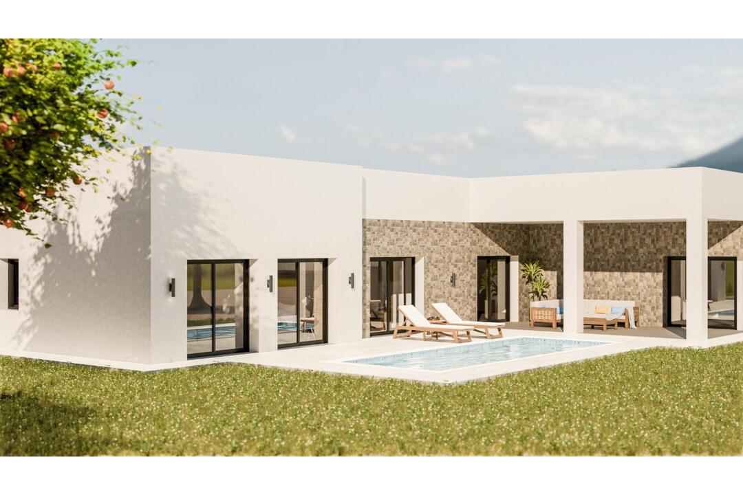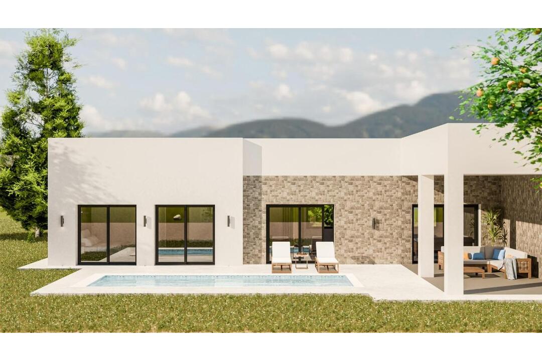 NEW BUILD VILLAS IN PINOSO New Build Independent modern villas that can be built on rustic or urban plots of land we have a wide range available in the area of Pinoso: 3 bedrooms, 2 bathrooms, 2 guest toilets Private swimming pool Full installation of air conditioning Full equipped kitchen Big choice of quality materials Mains electricity and water 4 solar panels included AA Energy Label Plots from 10.000 m2 in various locations to choose from. 3.000 m fenced plot for easy maintenance Motorised sliding gate On the rustic plots, about 3.000 m2 of the total plot will be fenced and the houses will be delivered with about 1.000 m2 of gravel around the house. The house has a private swimming pool and photovoltaic solar panels for the electricity supply. There are several rustic plots to choose from in different locations, each with a different price (in the prices published in this advert a plot with a value of 40.000 eur has been considered, if the buyer chooses another plot, the final price will be recalculated accordingly). The delivery period is 8 months from the granting of the building licence. It is acquired under a self-promotion regime: the buyer makes payments on account of the price as the builder executes the work.