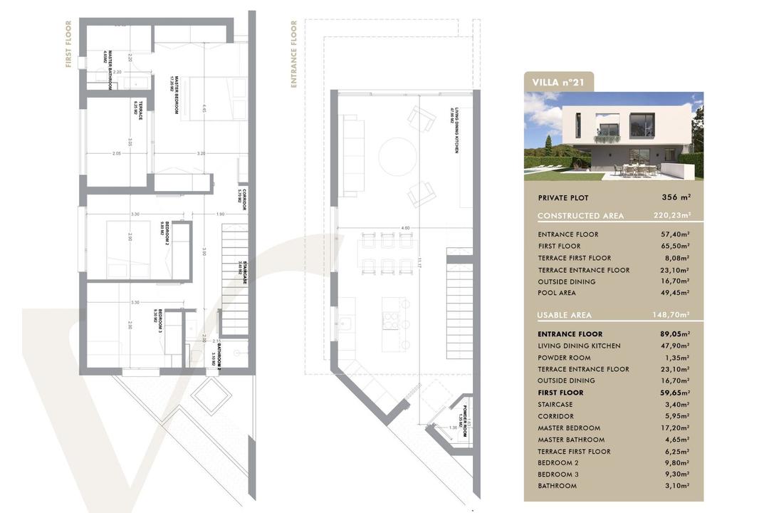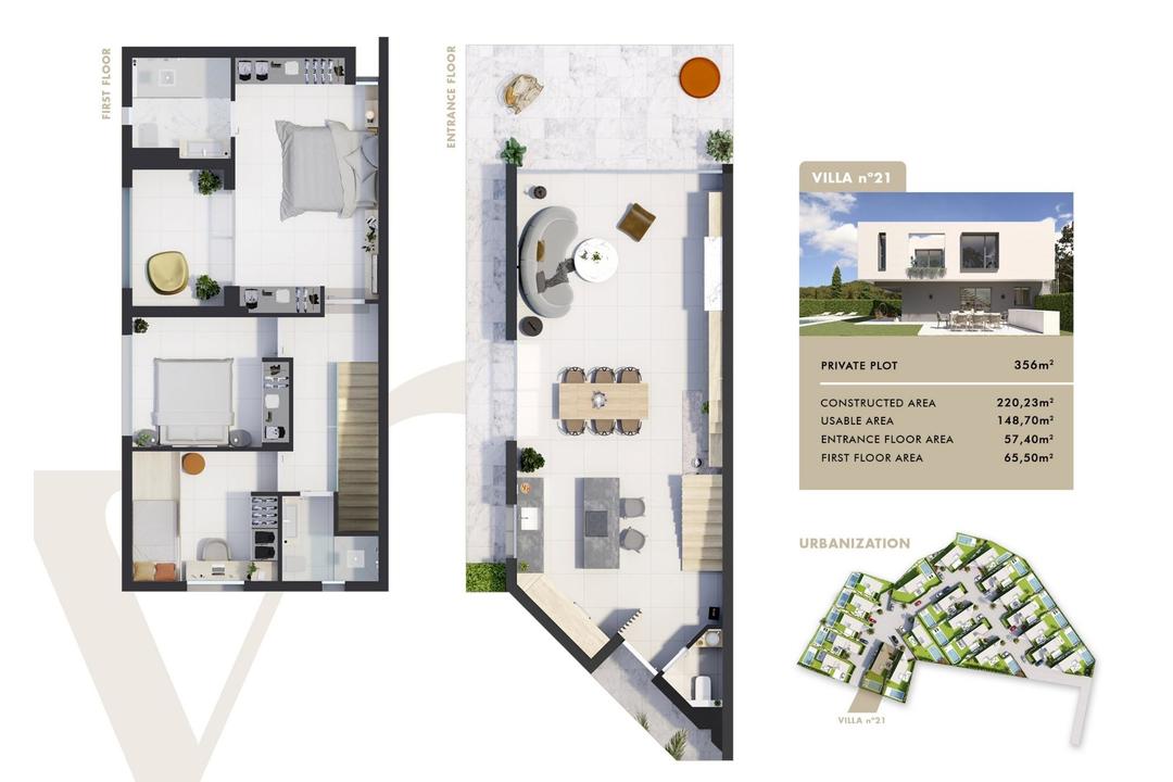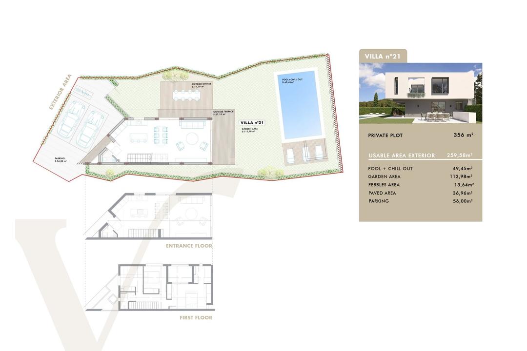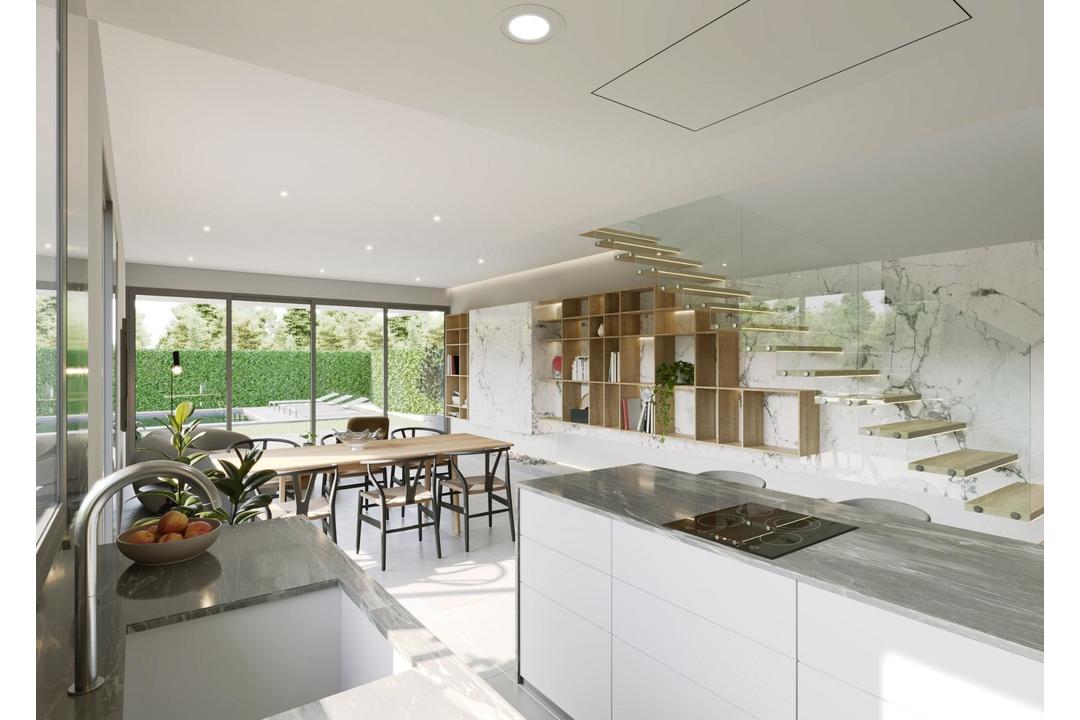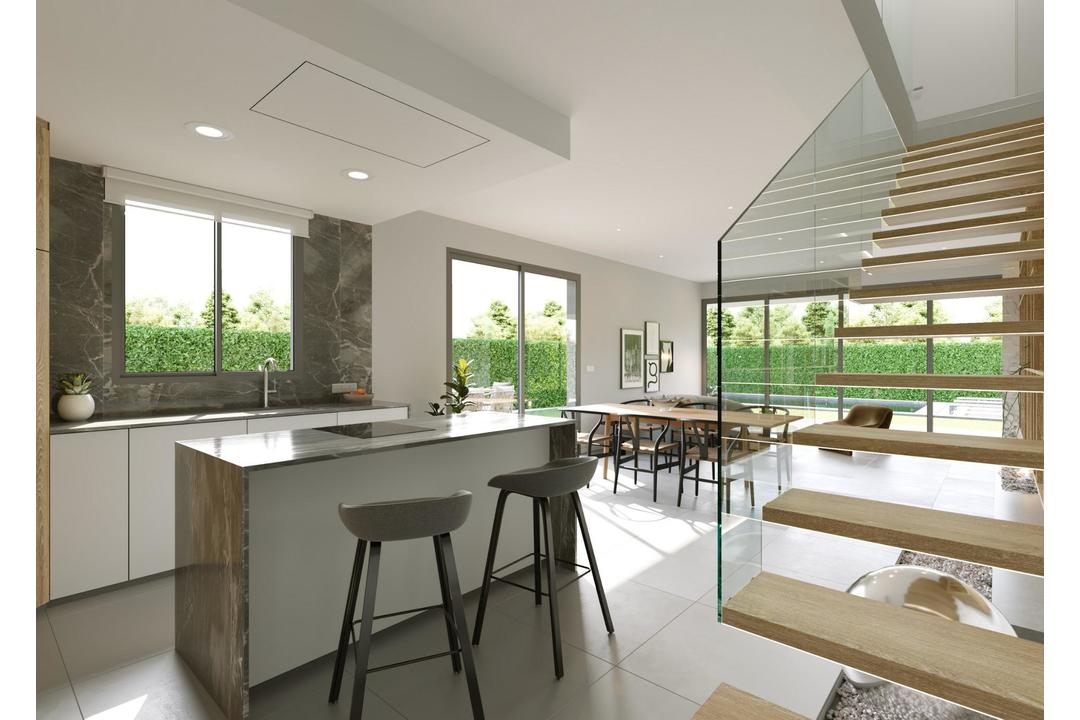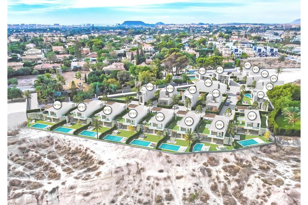 NEW BUILD VILLAS IN SAN JUAN DE ALICANTE New Build exclusive development of villas where luxury and elegance come together in the form of dream homes designed with you in mind. New project that offers a pleasant, familiar environment with all the comforts that you have always imagined, but never thought could come together in the same place. You never thought they could come together in the same place, combining the tradition of the Mediterranean villas with avant-garde and unique designs in which comfort, balance and, above all, your wellbeing are paramount. The development is made up of 21 independent and private villas, surrounded by landscaped areas and with their own swimming pool, in a gated and totally secure urbanisation. You can choose one of 3 models, some of them has an option for a basement at an extra cost. The Villas have been conceived under the premises of optimisation of architecture, technology, design and energy efficiency. We offer you the highest standards of innovation, commitment and quality in terms of materials and finishes. The result is an exclusive collection of aesthetically pleasing, efficient and elegant private homes. Villas designed to help you make the most of every aspect of your lifestyle, ideal for relaxation and leisure, but also with the ability to adapt to everyday needs. The Villas located in one of the best residential areas of our province; a privileged, quiet and exclusive location with all kinds of services within reach and excellent communications with the city of Alicante, San Juan and El Campello. La Font is a place with an enviable historical and cultural richness, just five minutes away and high level schools such as the pioneering and prestigious Escuela Europea de Alicante or the Liceo Francs Internacional de Alicante nearby. You can also escape to Muchavista Beach, about 1,200 metres from the villas, where the breeze and the Mediterranean Sea will be your allies for long walks and refreshing swims in summer. Your family can enjoy a wide range of facilities less than ten minutes away by car: natural parks, beaches, restaurants, supermarkets, shopping centres and sports centres.
