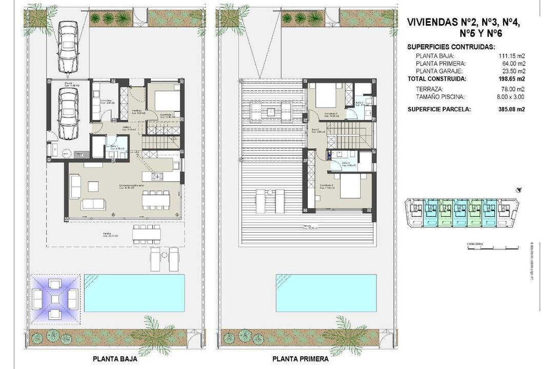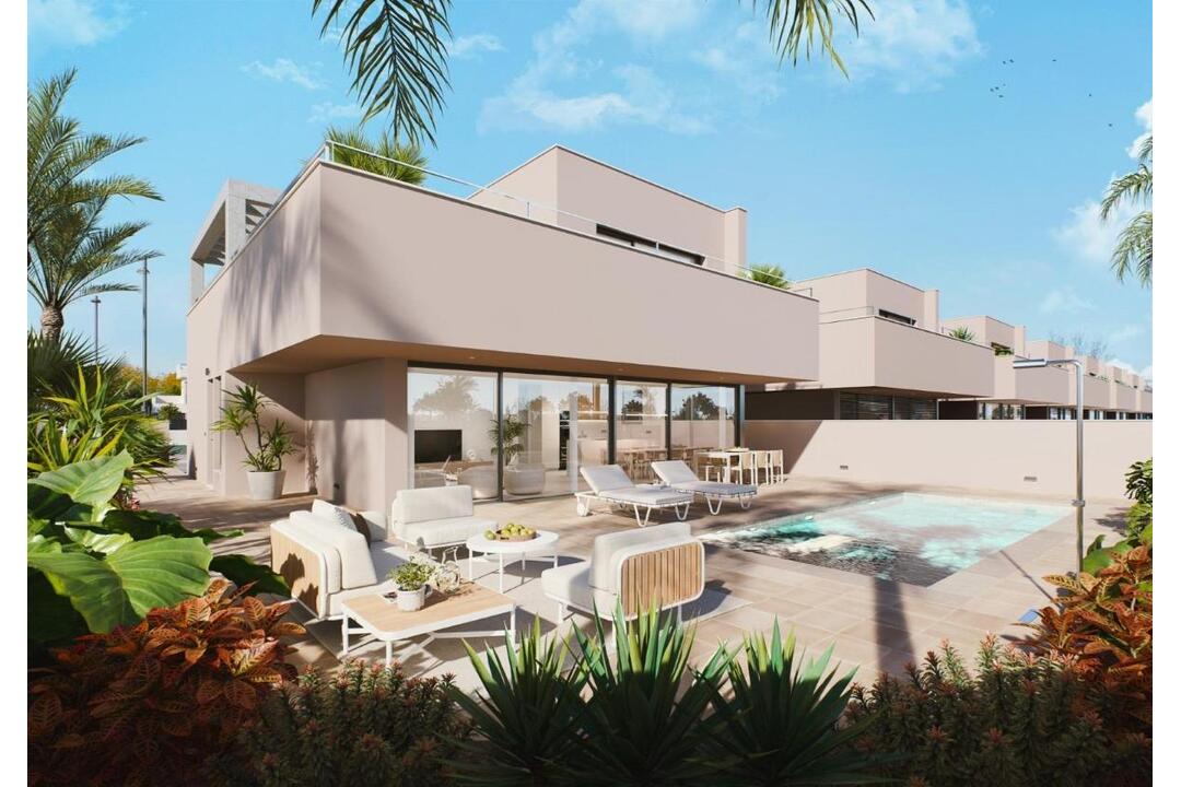 NEW BUILD VILLAS IN ROLDAN Modern New Build villas in Roldan , Torre Pacheco Villas of 199 m build on the plots of of 385 m, 438 m and 490 m. Villas has 3 bedrooms; two of them with complete bathroom. Kitchen furnished with top quality materials to be chosen by the owner, including electrical appliances, following an open concept with the dining room surrounded by large windows that provide throughout the day a pleasant light and direct access to the pool and private garden areas completely finished. Air conditioning (hot/cold) by ducts included. By taking care of the smallest details in the finishes, using the highest quality materials, personalised design and luxury without forgetting maximum comfort, we achieve the enjoyment of the homes both in summer and in the mild winter, making them habitable all year round. Garage for 1 vehicle and in addition, outside parking area for another vehicle, with separate entrance. Villas located close to the best golf courses, in the municipality of Torre Pacheco. This district has all the services that a place to live has to have: supermarkets, schools, medical centres, sports centres, pharmacies, etc... Amongst these schools is the King's College British School of Murcia, which is only 8 minutes drive from our development. It is the only international school in the area inspected by an external body accredited by the British Ministry of Education for the inspection of British schools abroad. Not forgetting the proximity of the RM-19 motorway which connects our residential with Murcia, which is 30 minutes away and Corvera Airport (Murcia) which is 20 minutes away. Alicante airport is 1 hour away. To get to Cartagena it would take 25 minutes by car. There are also several shopping areas close by, the Dos Mares Shopping Centre in San Javier is 15 minutes drive and the Espacio Mediterraneo in Cartagena is 22 minutes away. The distance to the nearest beach which would be on the Mar Menor in Los Alcazares would be 18 km, which translates to 19 min by car. 519