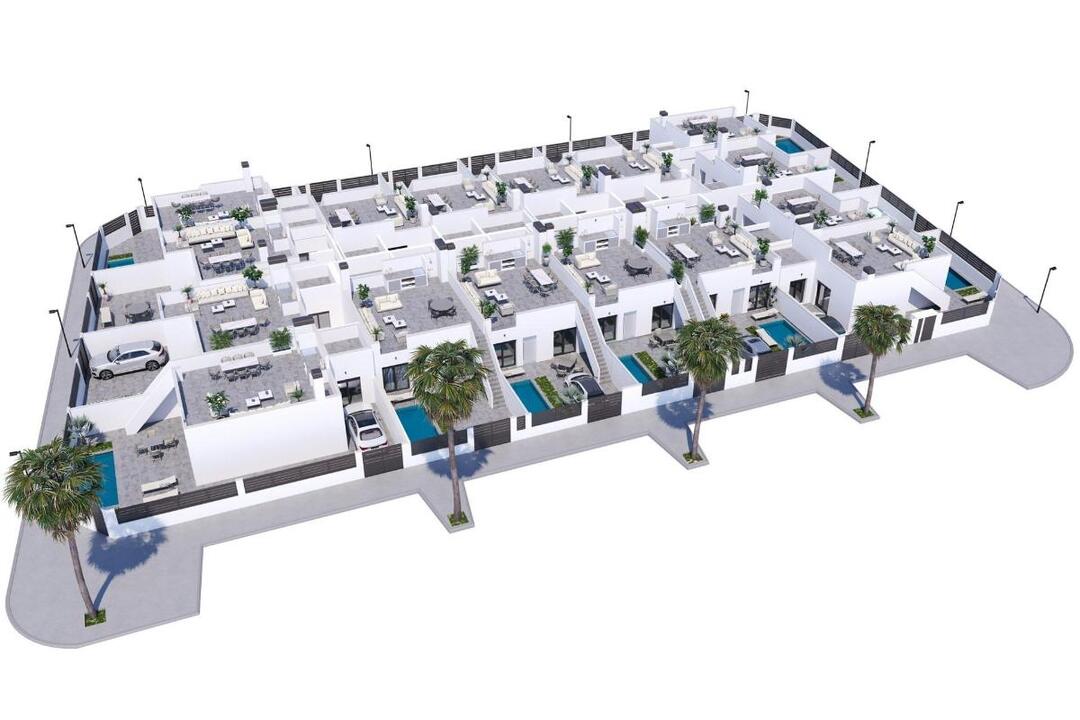 Modern, newly built semi-detached and terraced homes with private pools at El Alba Resort-Torre Pacheco Contemporary homes in a growing Mediterranean holiday community This new development comprises 16 exclusive semi-detached and terraced homes, situated at El Alba Mediterranean Resort in Torre Pacheco. Designed as single-storey homes, these modern properties offer a perfect blend of comfort, functionality and Mediterranean outdoor living. El Alba Resort is an up-and-coming residential area surrounded by open countryside and golf courses, within easy reach of the town of Roldn, where you will find supermarkets, restaurants, banks and everyday amenities. The complex already features a social club with a swimming pool and restaurant, and a retail area is currently under development, adding further convenience and value to the location. Single-storey home with private garden and sun terrace Each property features 2 bedrooms and 2 bathrooms, one of which is en-suite, with an open-plan kitchen connected to a bright living room. The layout is carefully designed to maximise natural light and create a seamless connection between indoor and outdoor spaces. All homes include: Fitted kitchen with appliances Bathrooms with vanity units, mirrors, lighting and shower screens Fitted wardrobes with drawers in the bedrooms Pre-installation for ducted air conditioning Indoor and outdoor LED lighting Three photovoltaic solar panels with a capacity of 1.5 kW per property The outdoor areas are designed to be enjoyed all year round, featuring a private garden with a swimming pool, a terrace and a large private sun deck with a summer kitchen, ideal for al fresco dining and relaxing in the sun. Quality features designed for comfort and efficiency These homes are built with stylish and functional interiors, focused on energy efficiency and modern living. The plot features a private parking space, ensuring convenience and security. The combination of solar panels, high-quality insulation and smart design provides an energy-efficient home, ideal for permanent living, holiday use or as a rental investment. Excellent location near golf courses, beaches and airports Roldn town centre 2 km away Mar Menor beaches 15 km away Mediterranean beaches 20 km away La Torre Golf Resort 5 km away Terrazas de la Torre Golf 6 km away Murcia Corvera Airport 18 km away Cartagena 30 km away This strategic location offers easy access to golf courses, beaches, amenities and transport links, whilst enjoying a peaceful residential setting. A smart investment on the Costa Clida These townhouses and semi-detached homes at El Alba Mediterranean Resort offer an excellent opportunity to purchase a modern property with a private pool in the rapidly growing area of Torre Pacheco. Contact us today for further information or to arrange a viewing of these exclusive new-build homes.